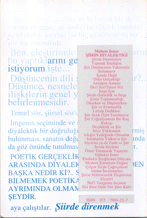 Şiirde direnmek, bir erdem oldu tüm zamanlarda. Bu yapıt, şiire katkıda bulunmak için sürdürülen bir yazı yaşamının ürünüdür. Şiirin kokusunu almaktan başlayarak son noktası konulup ozanından uçuvermesine değin süren şiirleşme sürecini ve şiirin oradan başlayan maceralarla dolu yeni yaşamını izleyen yazılardır bu yapıttaki yazılar…